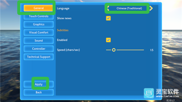 2、在【General】选项栏中把语言切换成Chinese(Traditional),接着点击【Apply】按钮。
