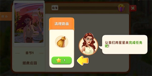 4、成功过关后会获得金币和星星奖励,接着点击左下角的任务列表,使用星星即可直接完成修复任务。