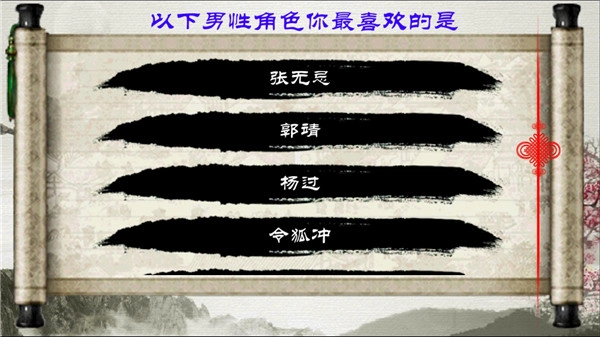 【5】以下男性角色你最喜欢?张无忌:悟性+5,根骨+10。郭靖:臂力+5,悟性-10,福缘+15。杨过:悟性+5,定力+5。令狐冲:悟性+10。林平之:定力+10,剑法+10。