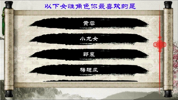 【4】以下女性角色你最喜欢?黄蓉:悟性+5,加奇门基础属性。小龙女:定力+5,加剑法基础属性。郭襄:福缘+5。根骨+5。梅超风:臂力+6。加拳掌基础属性。周芷若:定力+10。