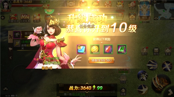 3、登录狂领十四天礼,神兵名将战力猛涨。