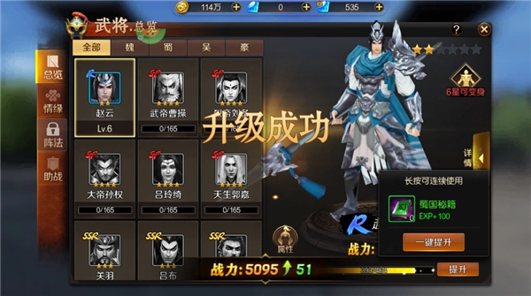 3、装备武将、提升武将等级。