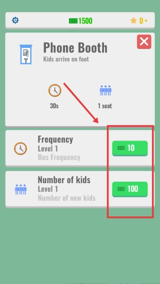 2、在设置界面,根据需求调整公交频率和新生数量数值,使用金钱进行升级。