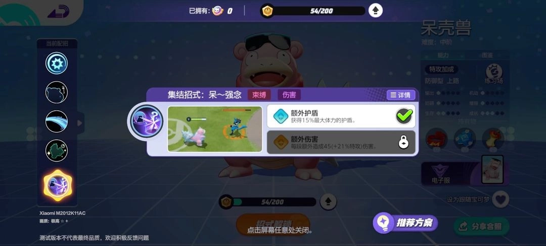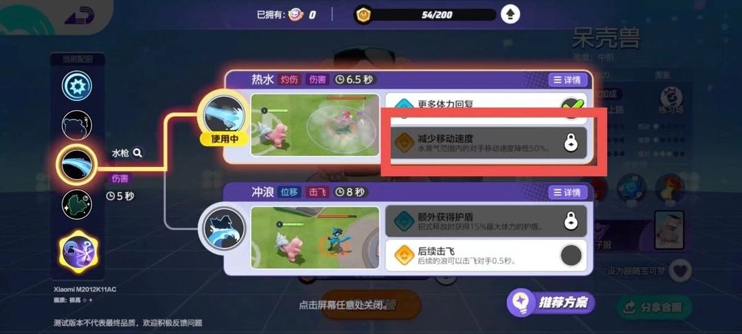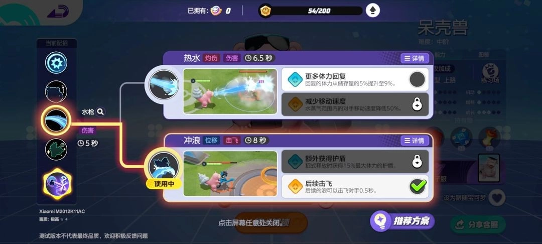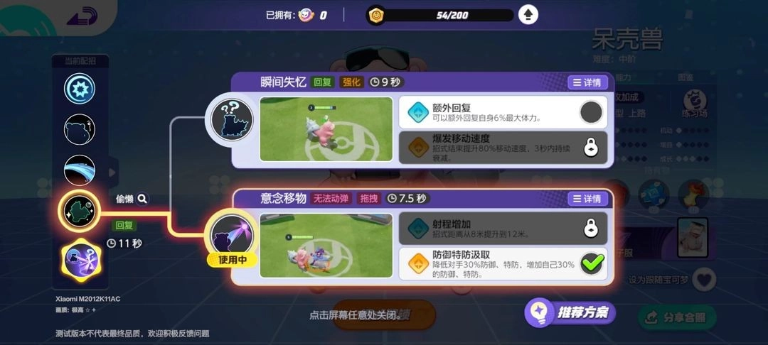 同时,呆壳兽的两组技能也能相互搭配使用,训练师可依据前面的技能说明,结合双方的阵容情况来做出选择。要是对手的宝可梦拥有较多突进和位移类技能,就可以选用冲浪;当对方队伍里物理攻击型的宝可梦占比较多时,不妨考虑使用热水;如果队伍需要控制或干扰对手的手段,意念移物会是合适的选择;而要是己方队伍中缺少能分担伤害和进行回复的宝可梦,瞬间失忆则可以纳入考虑范围。