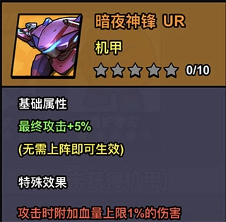 这款UR级别的机甲具备强化自身关联属性的特性。在玩家对战模式中,胜负往往取决于操作频率,因此这件装备是该模式下的核心配置;而在部分敌方带有暴击抑制效果的副本挑战里,它同样能发挥关键作用,助力通关。