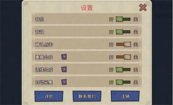 首先呢,背景音乐要不要开完全看个人喜好啦,要是关掉游戏自带的音乐,你就可以一边听自己喜欢的歌一边玩啦。不过有两点得注意,自动采集和连续合成功能最好都关掉哦。要是开着自动采集,那些小幻兽们会到处乱采,不仅特别浪费体力,还会把场地弄得乱糟糟的。而关掉连续合成呢,是为了方便进行“5合”操作——一定要记住哦,在这个游戏里,除了那些明确标注不能合并的物品之外,所有东西都是凑够5个再合成更划算呢!