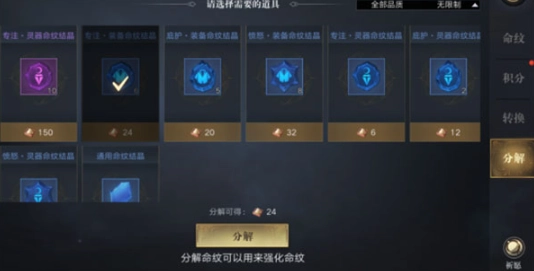 为什么带有红色命纹的物品不能使用呢?原因其实很简单,因为打造时需要按照品质从低到高的顺序来进行。就像图中展示的那样,只要集齐十个相同类型的命纹结晶,就能打造出一个命纹啦!