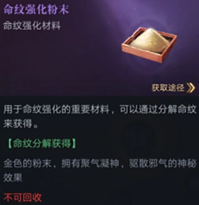 使用命纹强化粉末能够提升命纹等级,从而获取更强大的命纹基础属性加成。