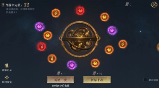 每次进行祈愿都能得到1点积分,这些积分可以在命纹系统里的积分商城中兑换血清、开光石之类的珍稀奖励。