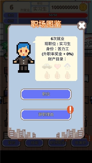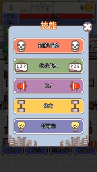 每当完成一项工作,体力值下方的经验值就会依据工作的重要性获得不同幅度的提升。