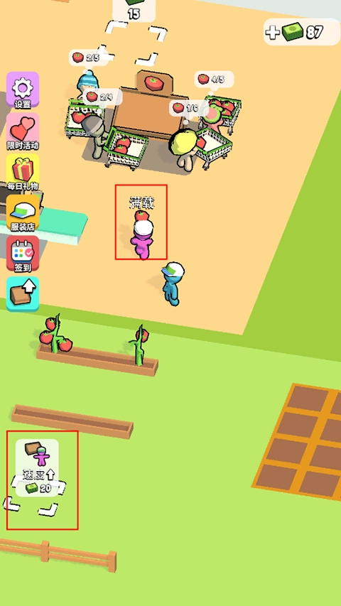 游戏开局会引导玩家搭建基础建设,其中最关键的是种植土地番茄,玩家只需靠近番茄种植区域,就能获取成熟的番茄果实。