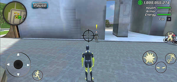 进入超凡蜘蛛侠游戏,通过滑动方向盘来进行移动;