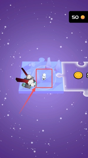当看到紫色星空和红色方框时,直接点击方框里的小白人就能开始游戏。留意右上角有50个金币,右边拼图区域的黄色图标不用理会。