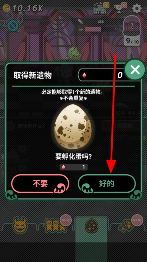 要是拥有充足的孵化资源,就点击“好的”来孵化蛋,以此获取新的遗物,这些遗物可以给角色提供各式各样的助力效果。