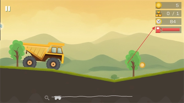进入游戏后,请留意屏幕右上方显示的金币数量、货物数量目标、时间倒计时以及油量条这些信息。