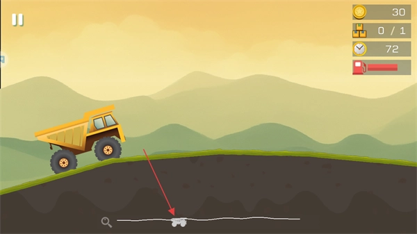 在屏幕下方画出线条,以此操控卡车的行驶路径,借助地形条件推进。