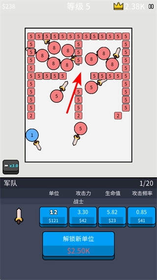 在游戏里派遣不同等级的单位去攻击对应数字的区域,发起攻击时要优先挑选数字和单位等级相匹配的区域,以此保证攻击效率达到最高。