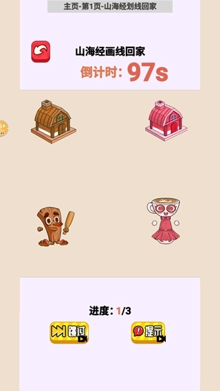 3、将《山海经》相关的内容(或元素)划线引导回家中,规划路线时要尽可能缩短距离,避开障碍物,在倒计时结束前完成任务。