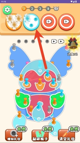 2、留意钉子的位置和颜色,借助点击或滑动的方式,按照合理的顺序将螺丝钉拔除;