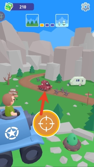 2、在瞬息万变的战场上,你可以用手指滑动来操控炮弹的发射轨迹,提前判断落点并精准瞄准敌方装甲的薄弱之处,以此打出高额伤害,甚至能通过范围爆炸效果清除大片敌人。