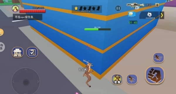 3、点击变身按钮后,小鹿便能直立行走,还可以去寻找NPC承接任务。
