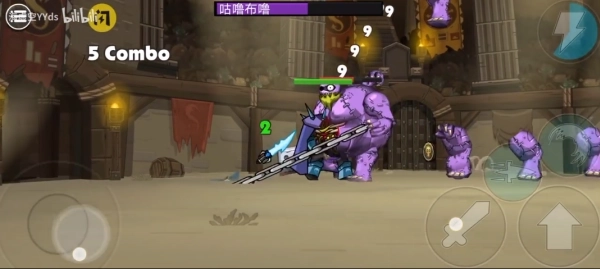 1、观察界面右侧的按键,包括攻击、跳跃、技能等图标,能看出游戏采用虚拟按键操作模式。界面左侧则设有移动摇杆,主要用于操控角色的移动方向。