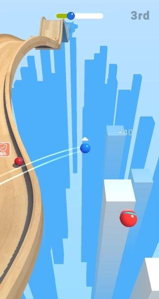 1、操控球球的前进方向与速度,在赛道上一路疾驰,争取用最快速度冲过终点来提高排名。