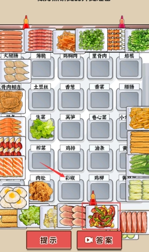 选择红框彩椒食材,完成煎饼配料准备工作。