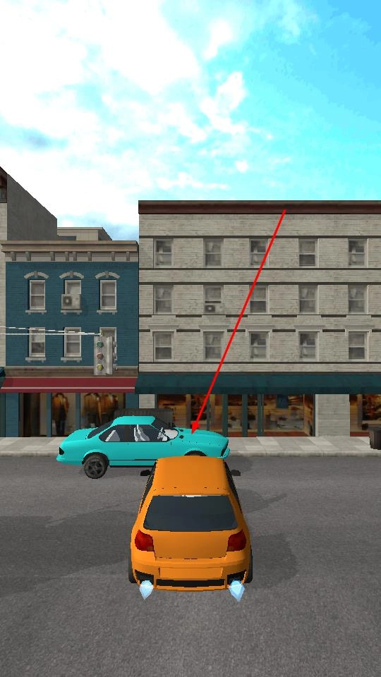 进入游戏后,操控橙色车辆行驶,撞击街道上的目标车辆如蓝色轿车,同时能够拓展破坏范围。