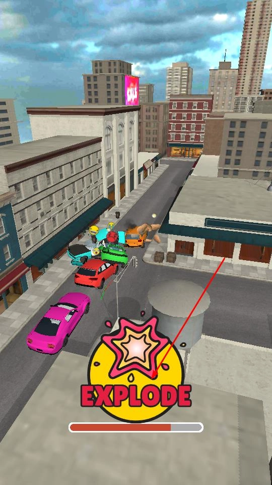 点击下方EXPLODE按钮,触发爆炸技能,摧毁周围车辆,获取奖励,就能够去查看游戏进程。