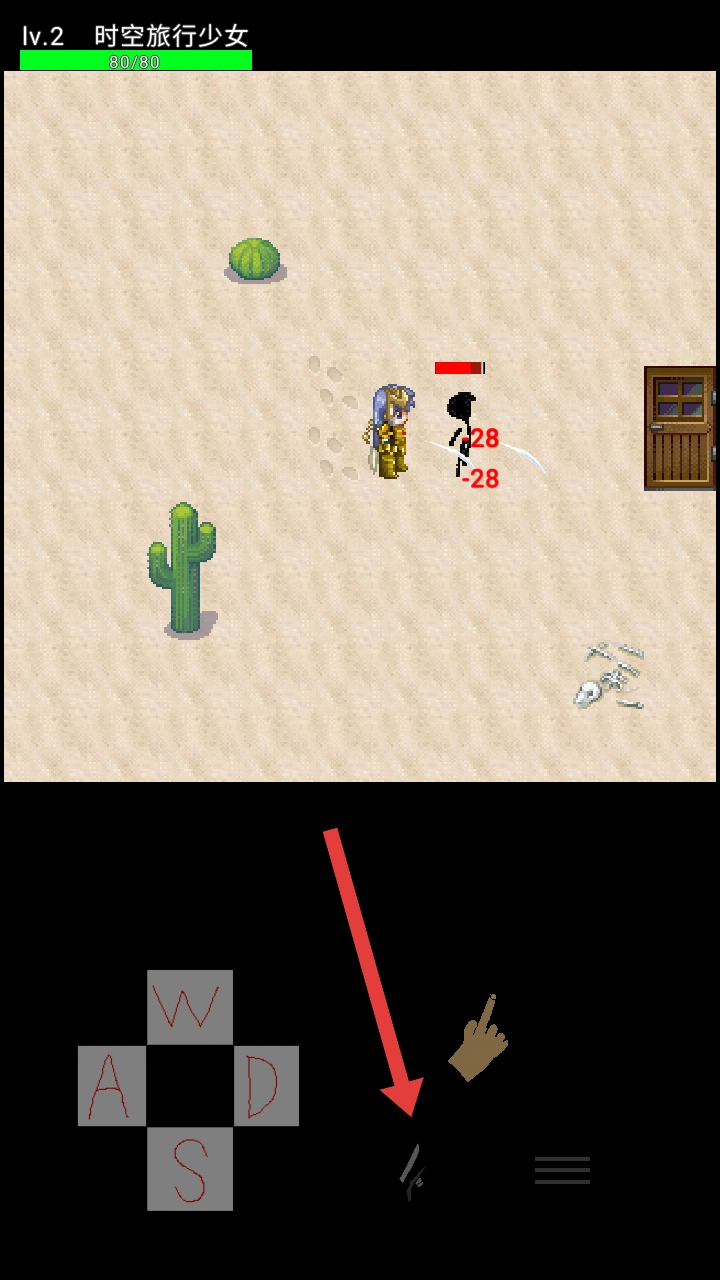 点击下方剑形攻击的图标,对单个敌人发起攻击,造成伤害如-28,优先消灭近身的敌人。