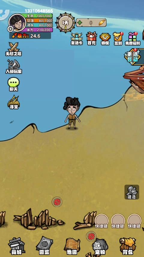 1. 依靠收集岛屿上像木头、石头和食物这类资源,建造出独属于自己的庇护所。
