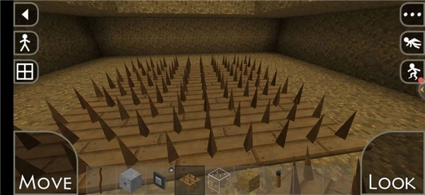 7、这就是制作完成后的陷阱,在家门口设置一个,再连接到屋内。白天投放肉块引诱狼进入,等到月圆之夜狼变成狼人时按下按钮,刺钉就会弹出,用这种方法刷钻石简直轻松至极。