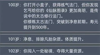 之后若能达到百岁之龄,即可触发特定事件——玩家将获得仙脉图录,由此开启一段更为强大的修仙征程。
