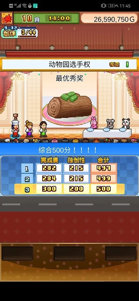 接下来是动物园杯一级赛事,这个级别的比赛对三围属性要求非常严苛,想要达到360分的完成度难度不小。这时候与其在三围上死磕,不如把重点放在独创性上——具体来说,如果三围上限是999的话,要拿到360分完成度需要三围总和达到2200分,而这意味着你得拥有品质至少150的花田牧场才行。但光是靠刷到999上限再去解锁花田牧场,这个过程实在太漫长了,远不如想办法提升独创性来得高效。要是在10级的第三产地进行制作,独创性分值能达到200分,这个分数足够通过动物园杯一级了(对手的总分大概在500分左右,偶尔会超过这个数,遇到这种情况多重复几次比赛,等对手分数降到500以下就行;当然,也有其他办法能让你的独创性超过200分)。