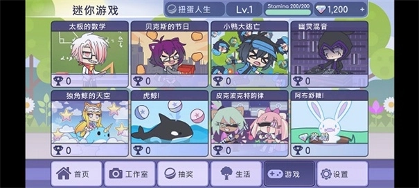 5、在游戏界面里,你能玩各类小游戏,并且可以从小游戏中赢取钻石奖励