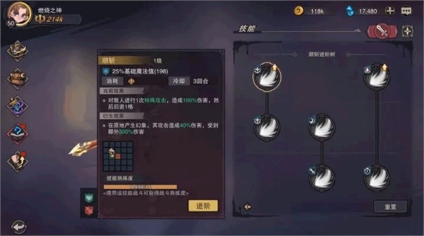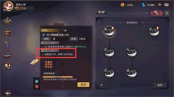 当熟练度达到后可以自由进阶技能,进阶后的技能将会增加衍生效果!