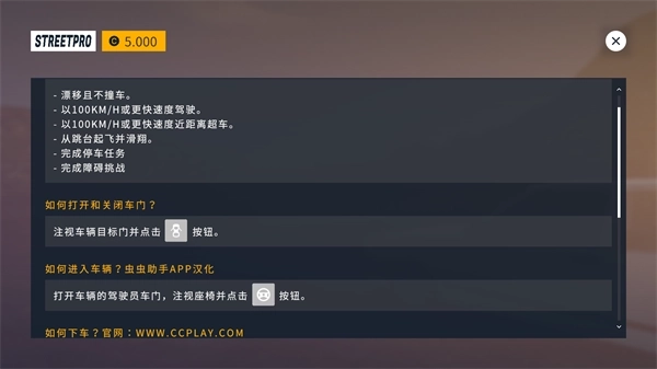 1、进入街头竞速游戏后,能看到所有语言都已完成汉化,在这里可以选择进入车展或直接开始游戏。