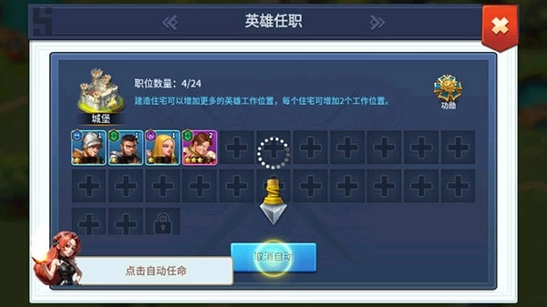 每个英雄都是具有自己的智慧和喜好,他们每天都穿梭在领地的各个建筑中工作,吃饭,睡觉,与异性恋爱,玩家可以通过领地规划和建筑物的摆放来优化自己的领地,从而使英雄可以更好的生活在领地中,英雄工作效率提升领地的产量也会提升。