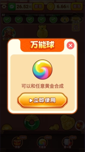 3、当合成出特定等级的黄金是还将获得直接提现的红包。