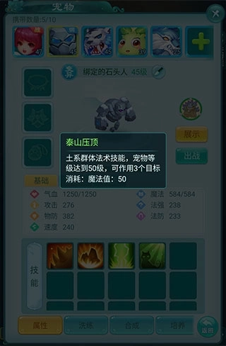 在升级途中,你还能获取一颗石头人的蛋,蛋里藏着一只变异石头人,用起来也挺合适的。这大概率是你拥有的第一只变异宠物,而且它属于群法宠,一次能攻击三个敌人,能显著提高团队的输出效率。