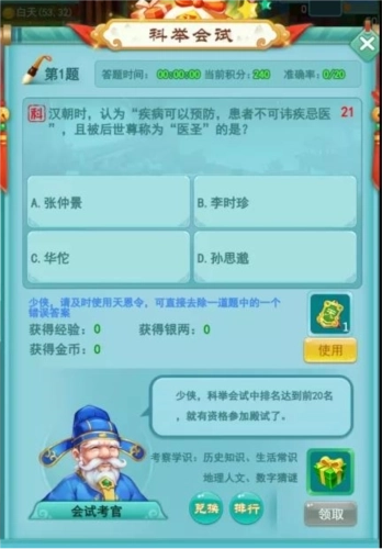 顺手回答系统提出的问题,答对不仅能获得大量经验,说不定还有机会拿到道具奖励呢。