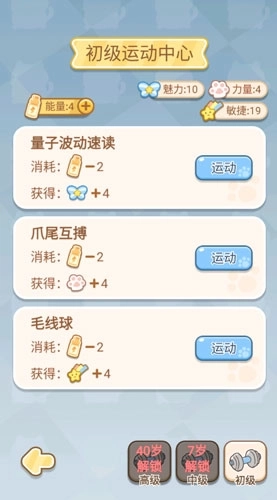 4、随着时间一年年过去,我们会解锁各式各样的玩法,比如在这里可以通过运动来提升力量。