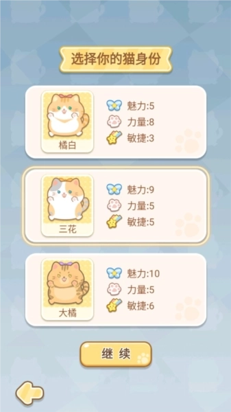2、随后选好猫咪的身份与天赋,就能正式开启猫生了。