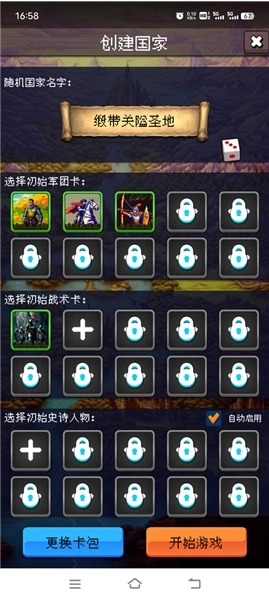2、接着创建国家,挑选初始军团卡、战术卡,完成史诗任务等操作后,点击开始按钮。