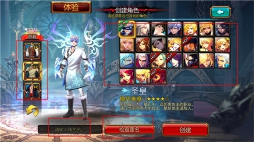 5、玩家可以选自右边自己的喜欢的角色职业,左边还有不同的时装可以进行更换,最重要的是玩家还需要给自己的角色起一个名字哦。
