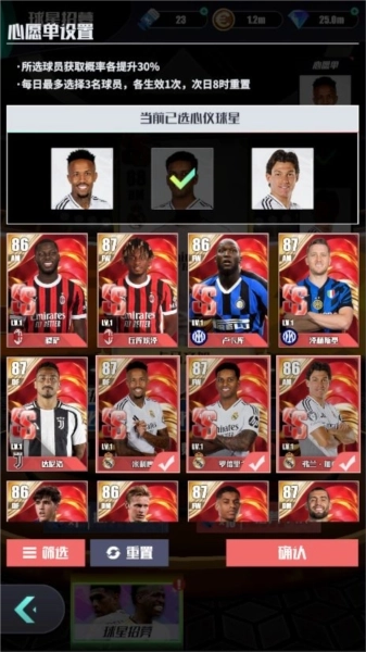 在招募系统里,心愿单是个挺关键的功能,玩家能通过它挑选自己心仪的球员。具体来说,玩家每天可以在游戏的心愿单中选定三名球员,这三名球员的获取概率都会各自提高30%。而且这个心愿单是每日刷新的,到第二天早上8点就会重置,每天最多选三名球员,每个球员的概率提升效果当天各生效一次。