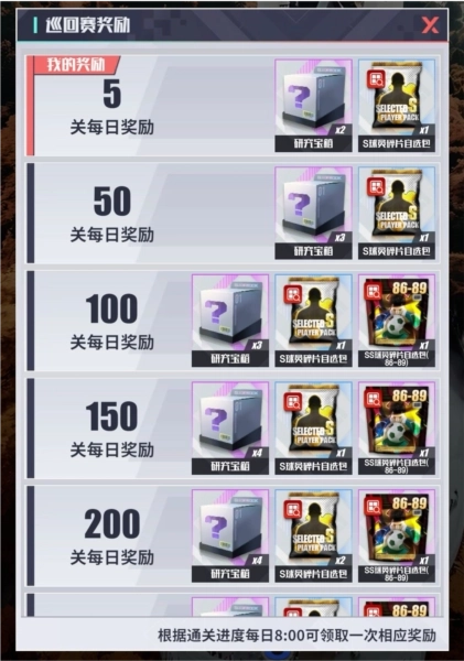 每通关一次巡回赛,都可以获得通关奖励。