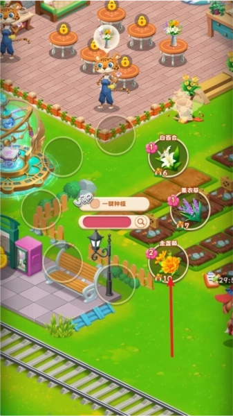 3、成熟之后,点击花朵旁的篮子即可一键收取。