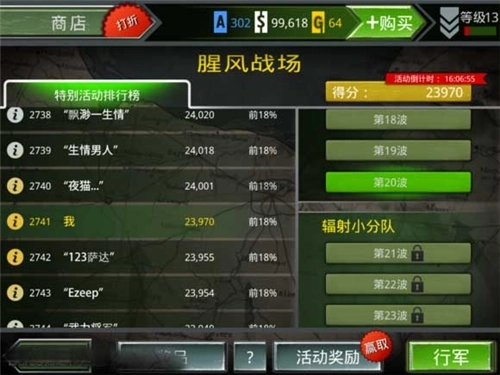 六、耐心等待主力武器MG(或M38)作为大奖登场。每周活动开启前要攒够足够的雷,等腥风战场活动时务必把卓越帽子和大奖都收入囊中。用火枪和冰封技能清屏,根据自己攒的雷量,一路战斗到火箭用完、雷也耗尽为止。